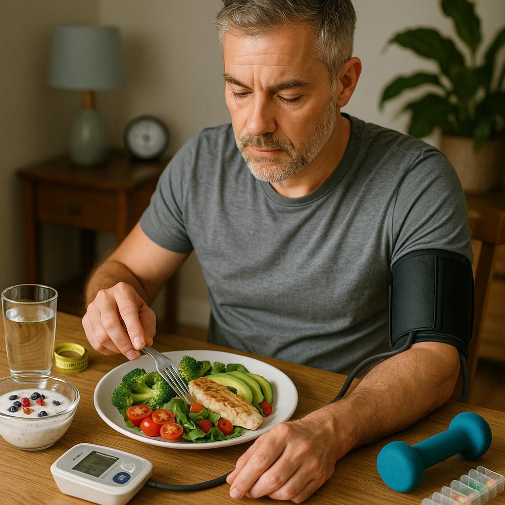 – Se a pressão permanece elevada: reduza ultraprocessados e sódio oculto, aumente potássio (folhas, abacate, feijão), priorize zona 2 e sono.