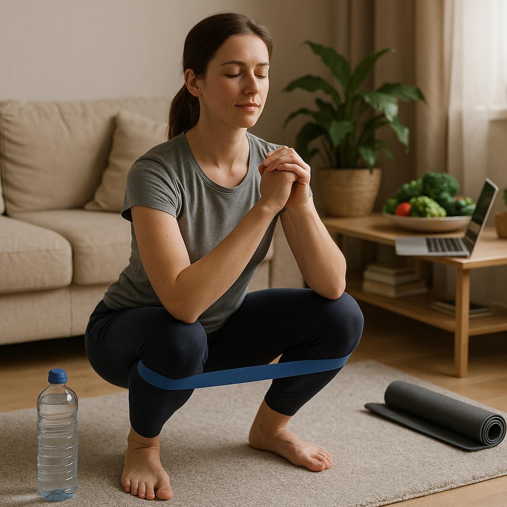 Exercícios com resistência aumentam a força da musculatura das pernas e do core, estabilizam as articulações e otimizam a bomba muscular que sustenta o retorno venoso. Você não precisa de uma academia completa; elásticos, uma toalha e até uma fita adesiva na altura da porta podem compor um treino eficiente e seguro.