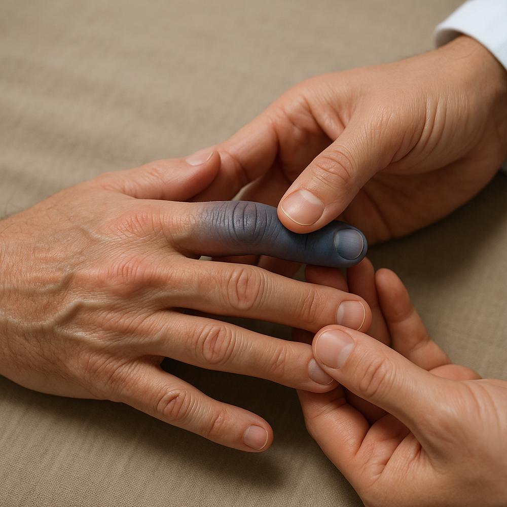 – Sensibilidade ao toque, tendência a hematomas e sensação de peso ao final do dia.