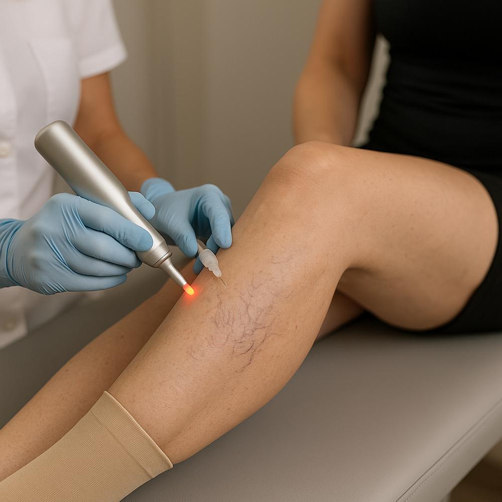 – Sequência típica: controlar o refluxo (quando presente) e, depois, refinar com escleroterapia/laser para os vasos remanescentes.