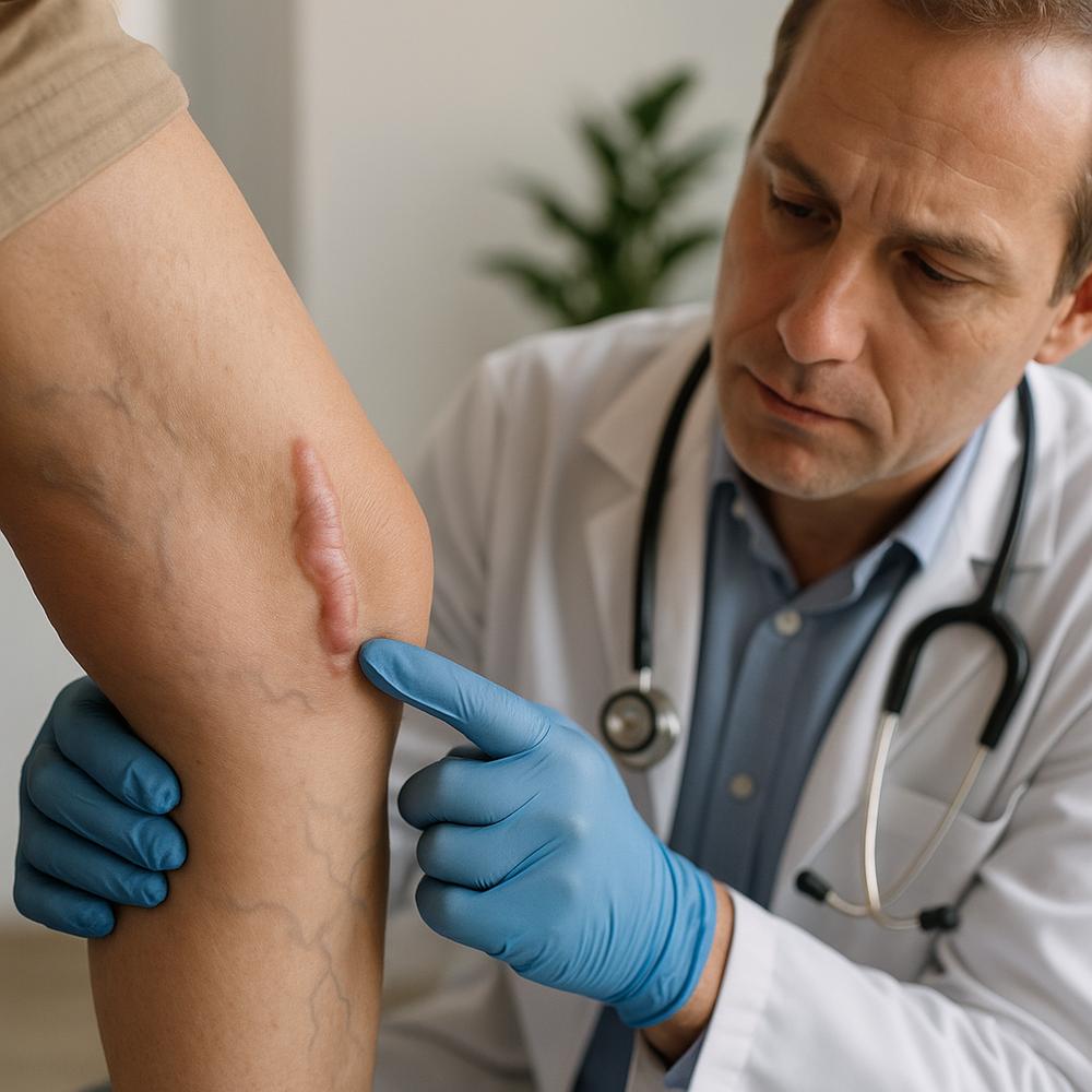 – Apresenta varizes dolorosas, manchas na pele ou feridas crônicas