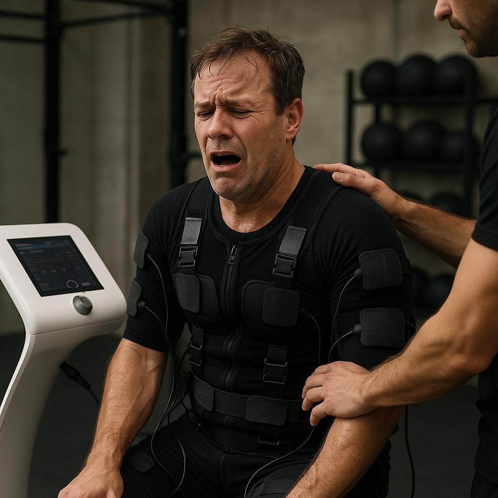 Nem todo aparelho é igual. A TENS visa modulação de dor com correntes de baixa intensidade, enquanto a EMS (eletroestimulação muscular) busca contração de fibras. Já as roupas de corpo inteiro incrementam a área e a intensidade total do estímulo, ampliando o risco de sobrecarga. Se houver uso, que seja preferencialmente local, com foco e monitorização próximos. Quanto maior a área estimulada, maior o cuidado.